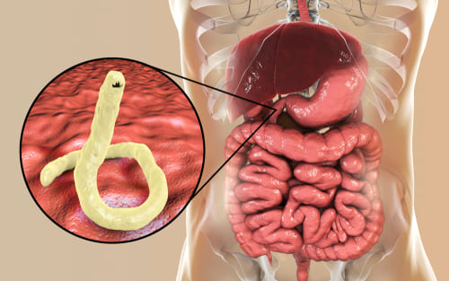 Una persona presenta dolor abdominal, consulta al médico, quien le ordena un coprológico (examen de materia fecal) que es analizado en el laboratorio y el resultado indica que tiene parasitosis.