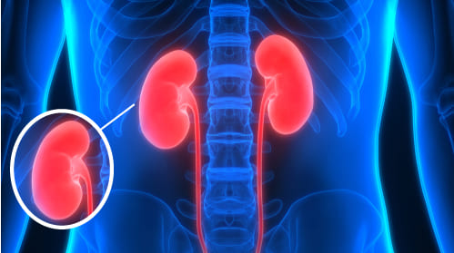 Órgano par del sistema urinario, ubicado debajo de la caja torácica (costillas), uno a cada lado de la columna vertebral, encargado de filtrar la sangre para eliminar los desechos en forma de orina y agua.