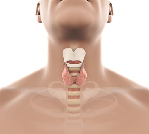 Glándula ubicada en la parte anterior e inferior del cuello. Produce unas sustancias denominadas “hormonas tiroideas”, que actúan en todos los tejidos corporales ayudando en su crecimiento y mantienen el funcionamiento de gran parte del organismo, regulando (controlando) el metabolismo, es decir, el funcionamiento químico y biológico normal de las células.